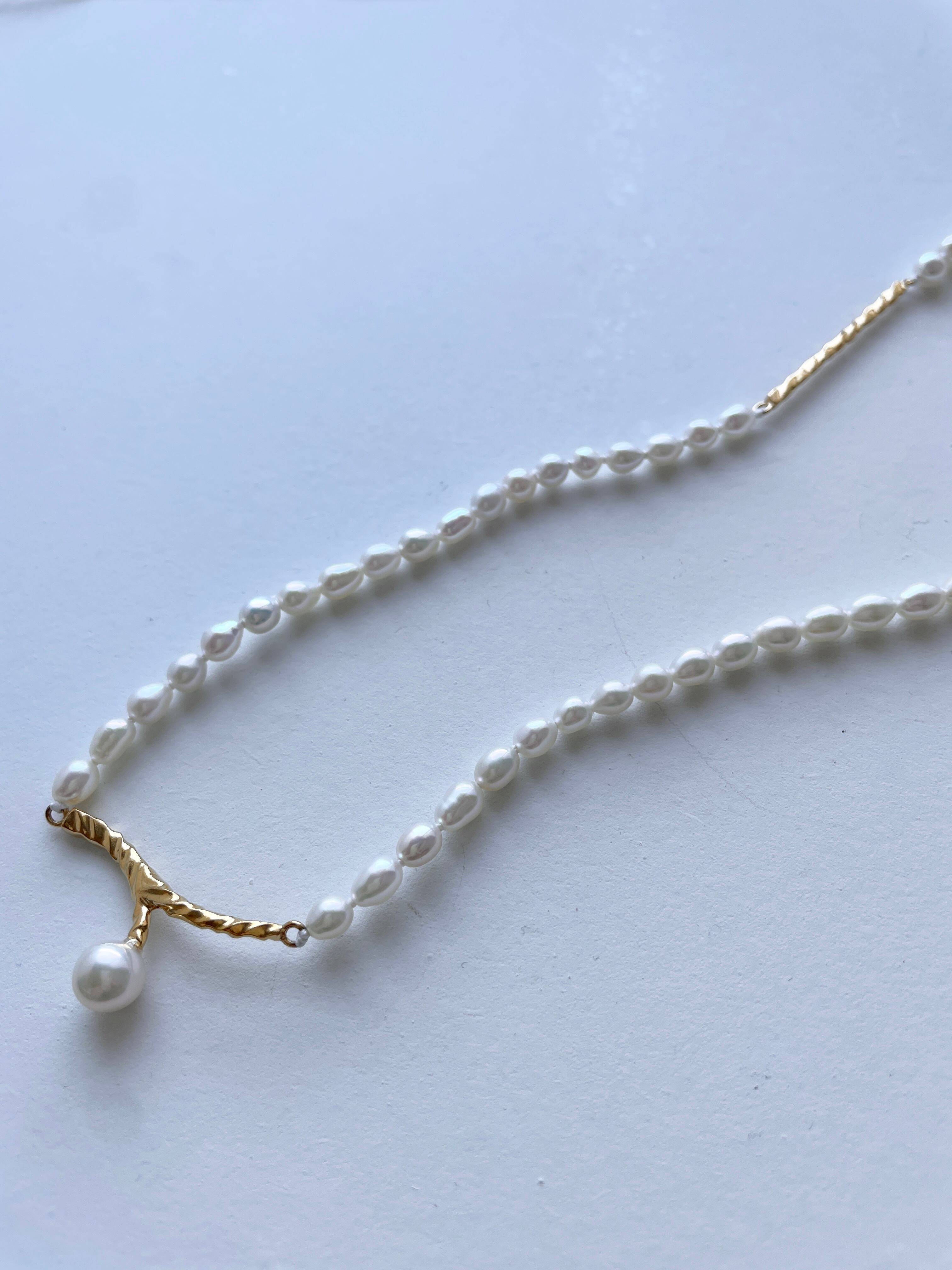 パールとワンポイントアクセントのネックレス。