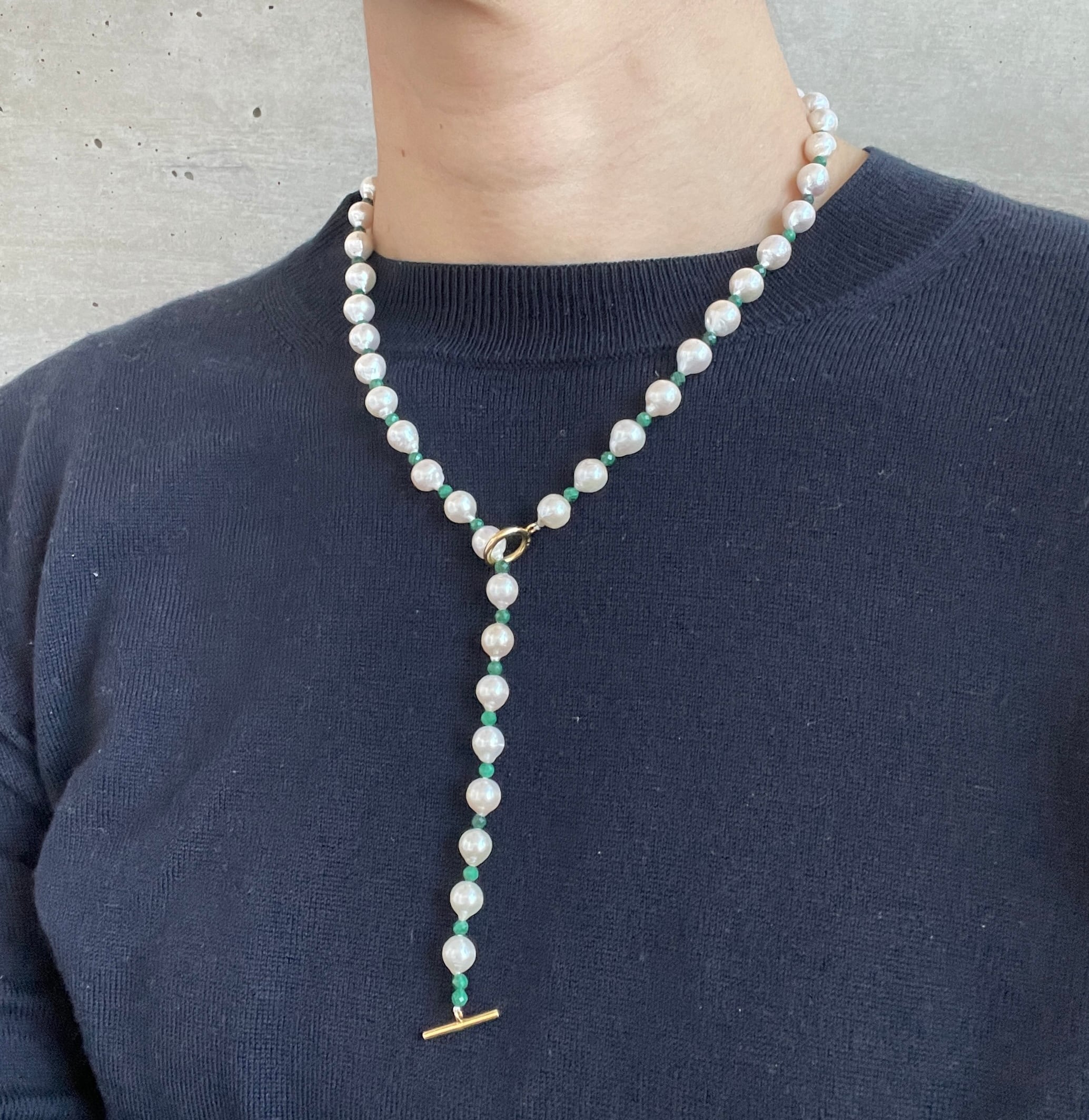 パーツをセンターにして、Y字ネックレスとしても使えます。