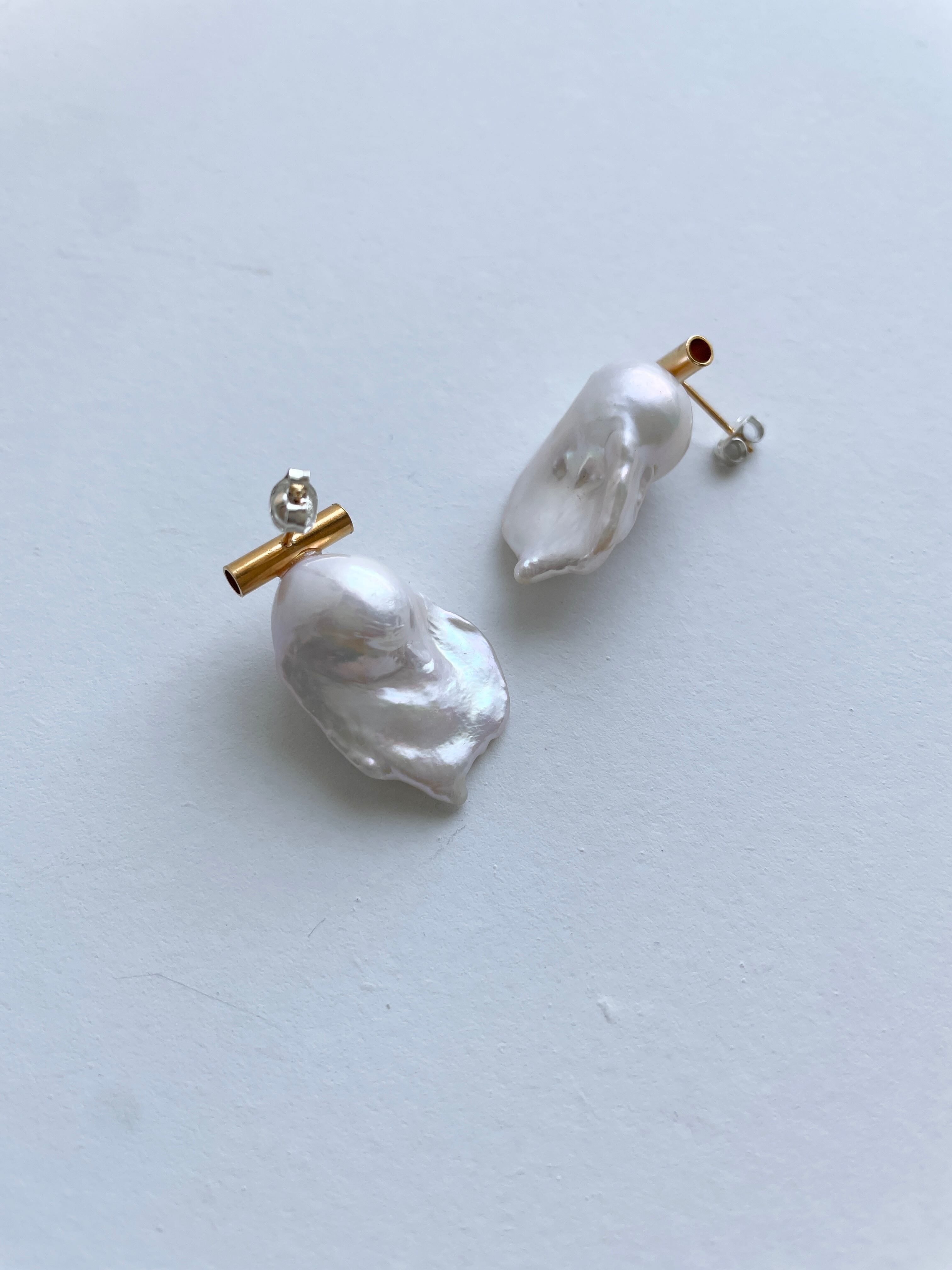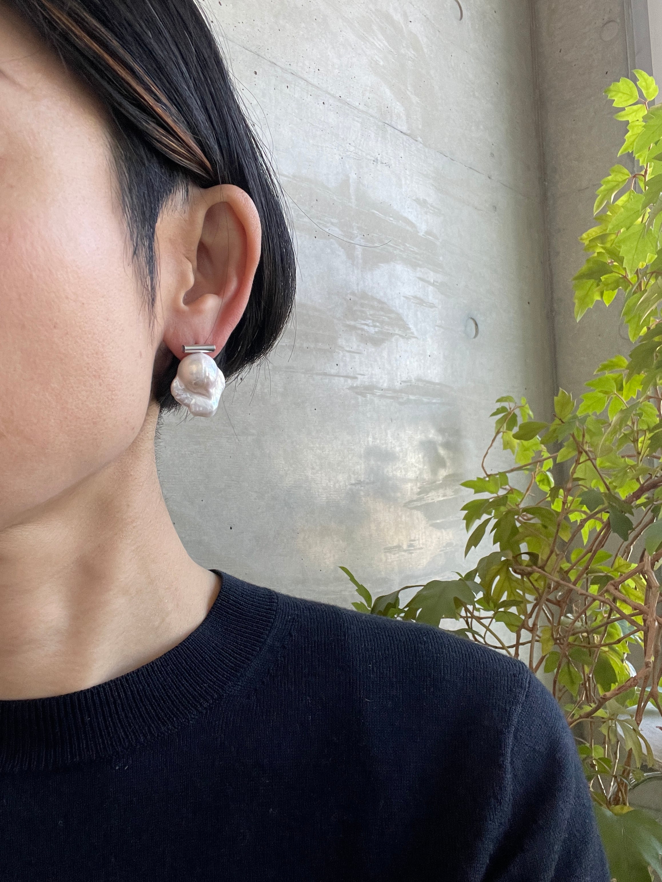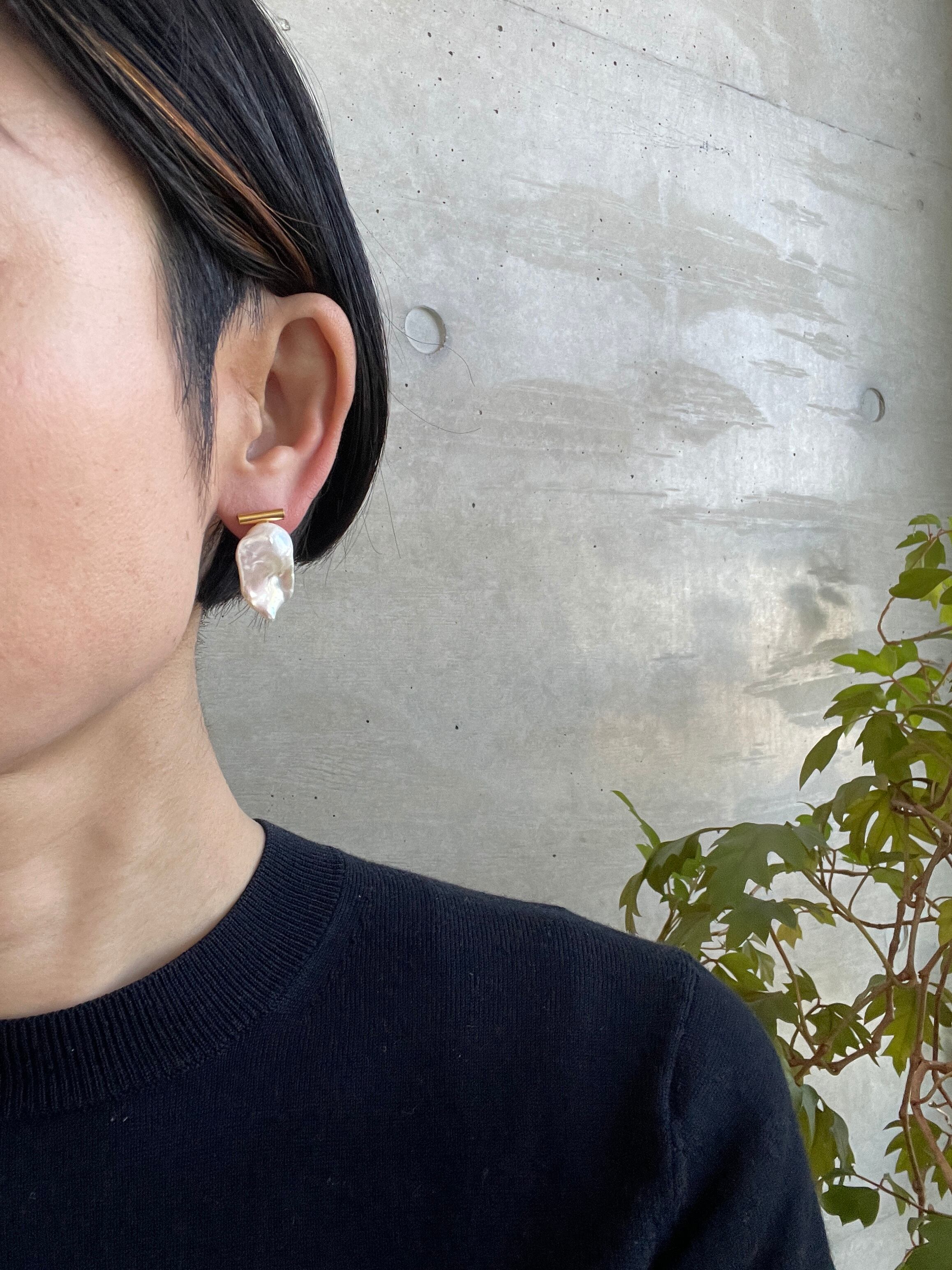 パールの形がユニークなピアス。