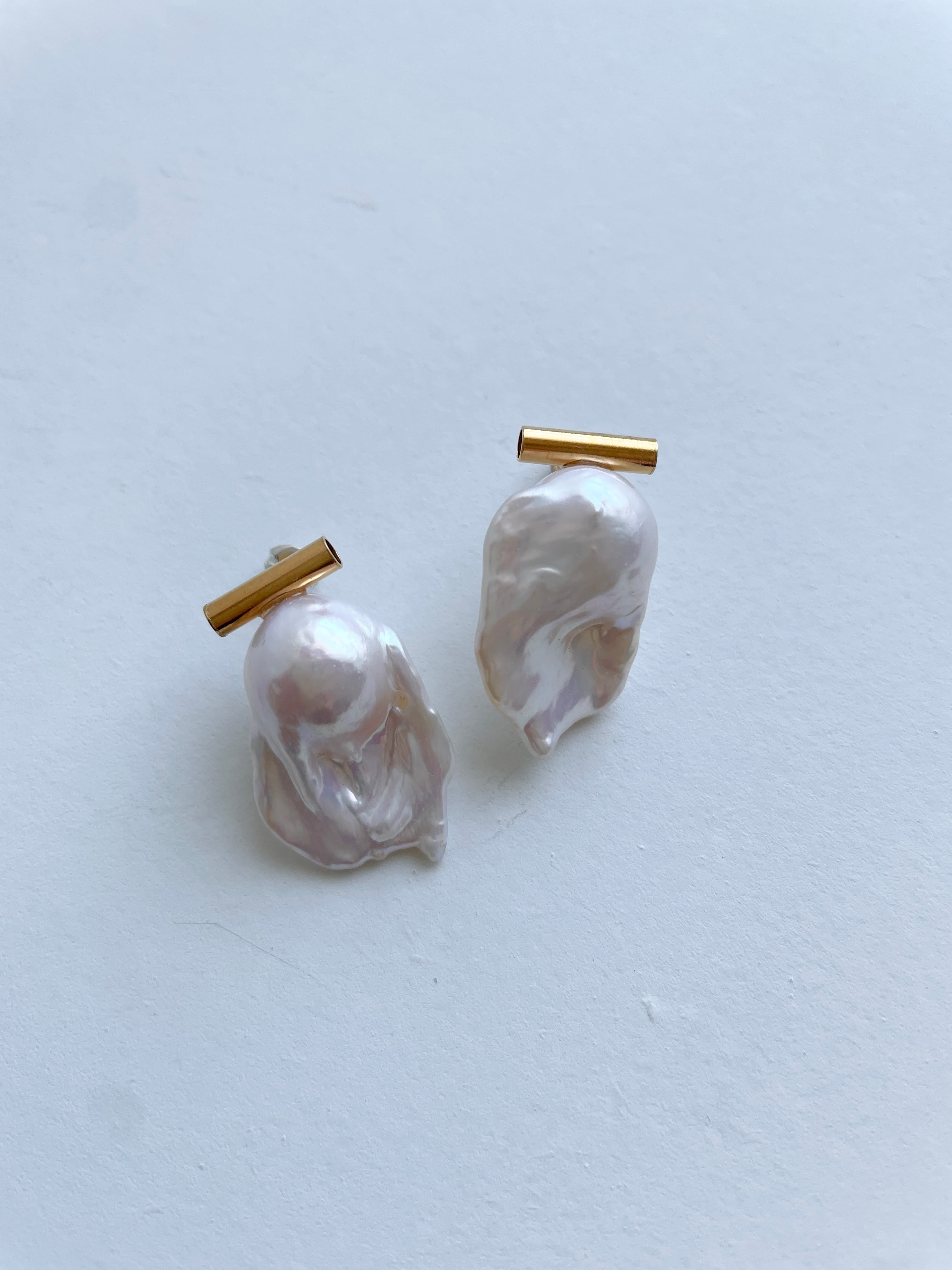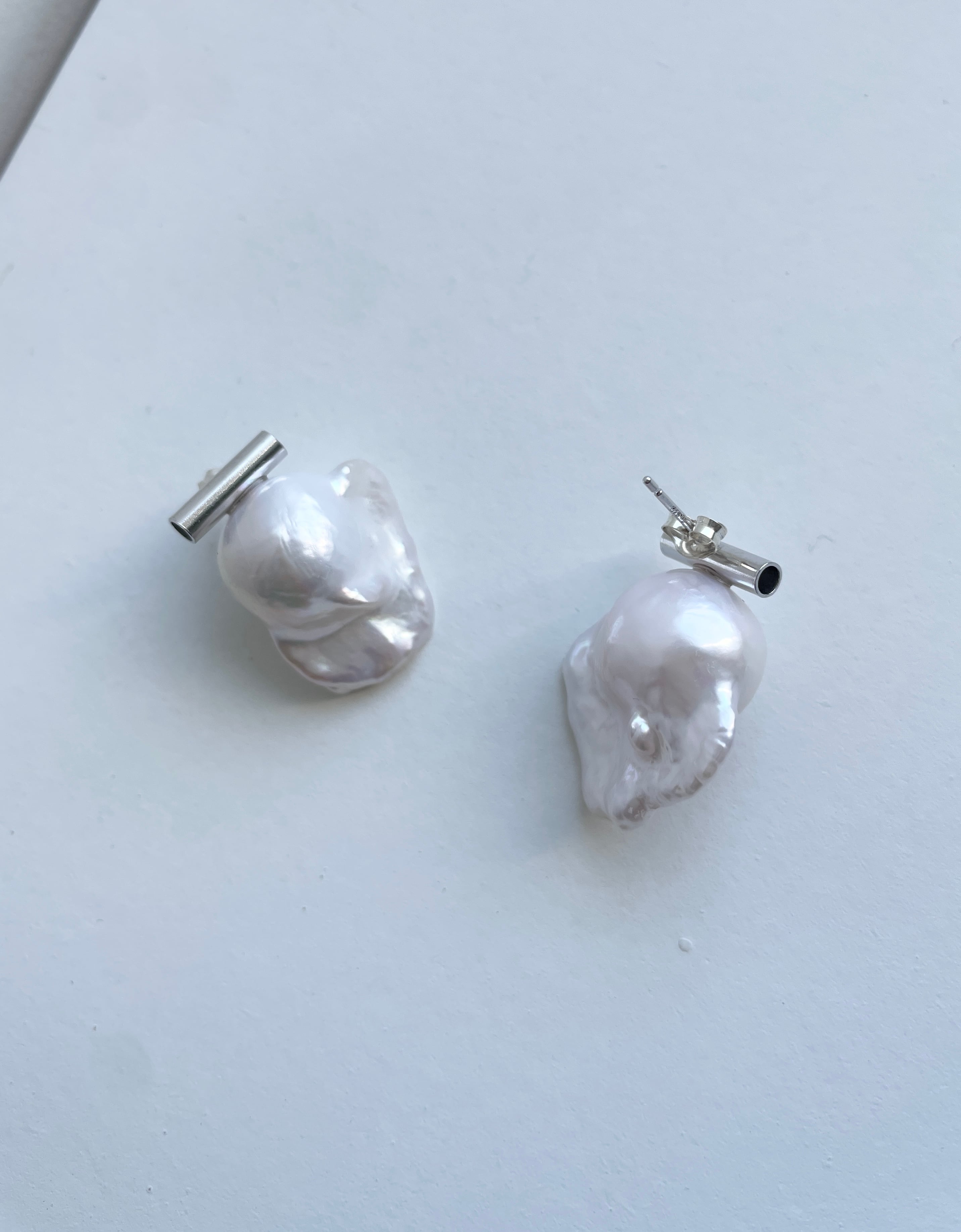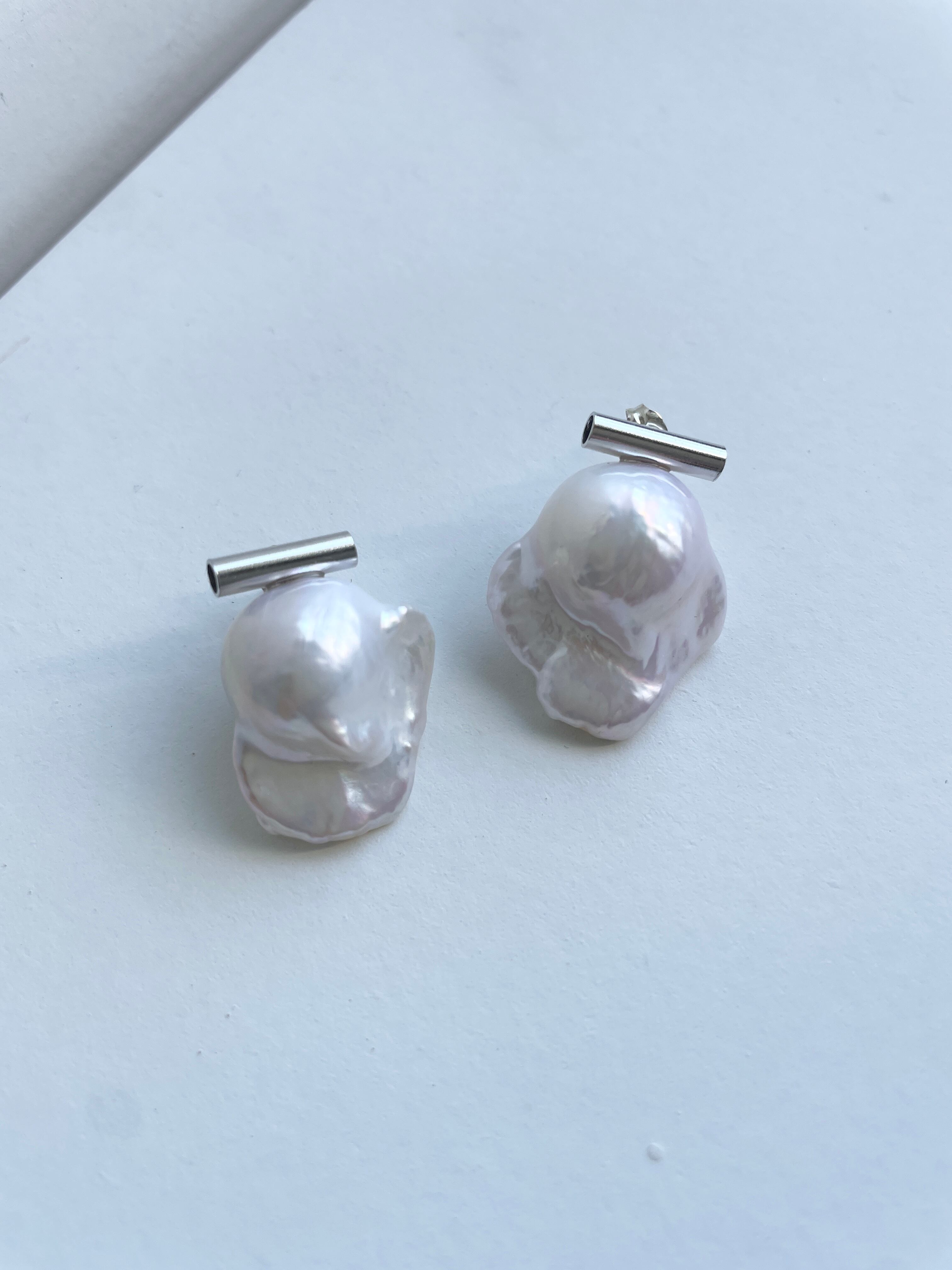パールの形がユニークなピアス。