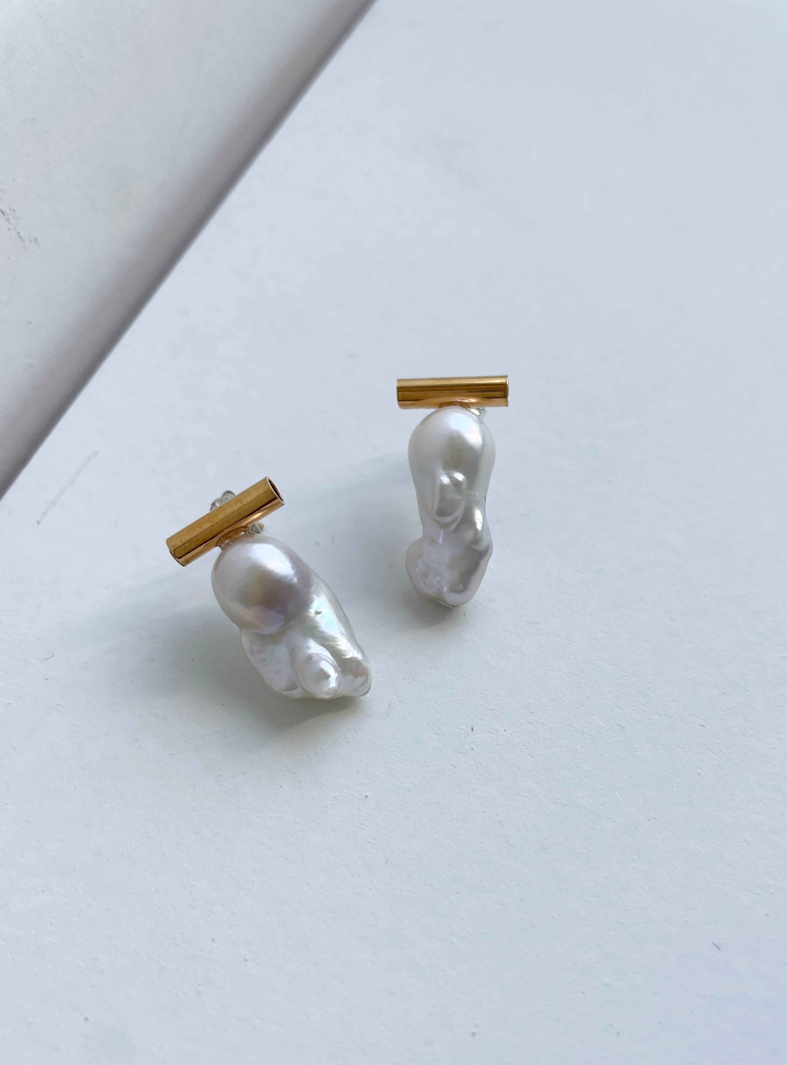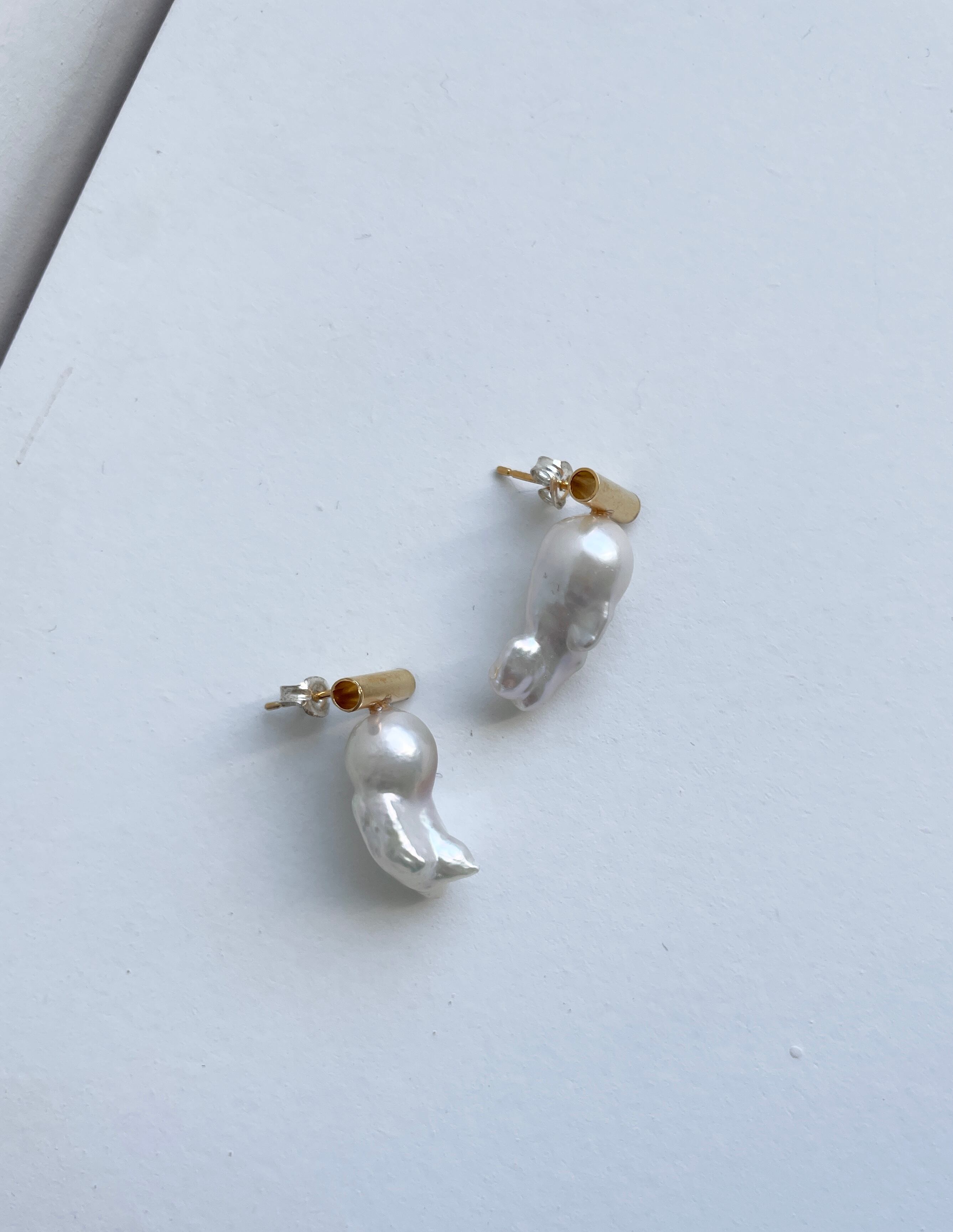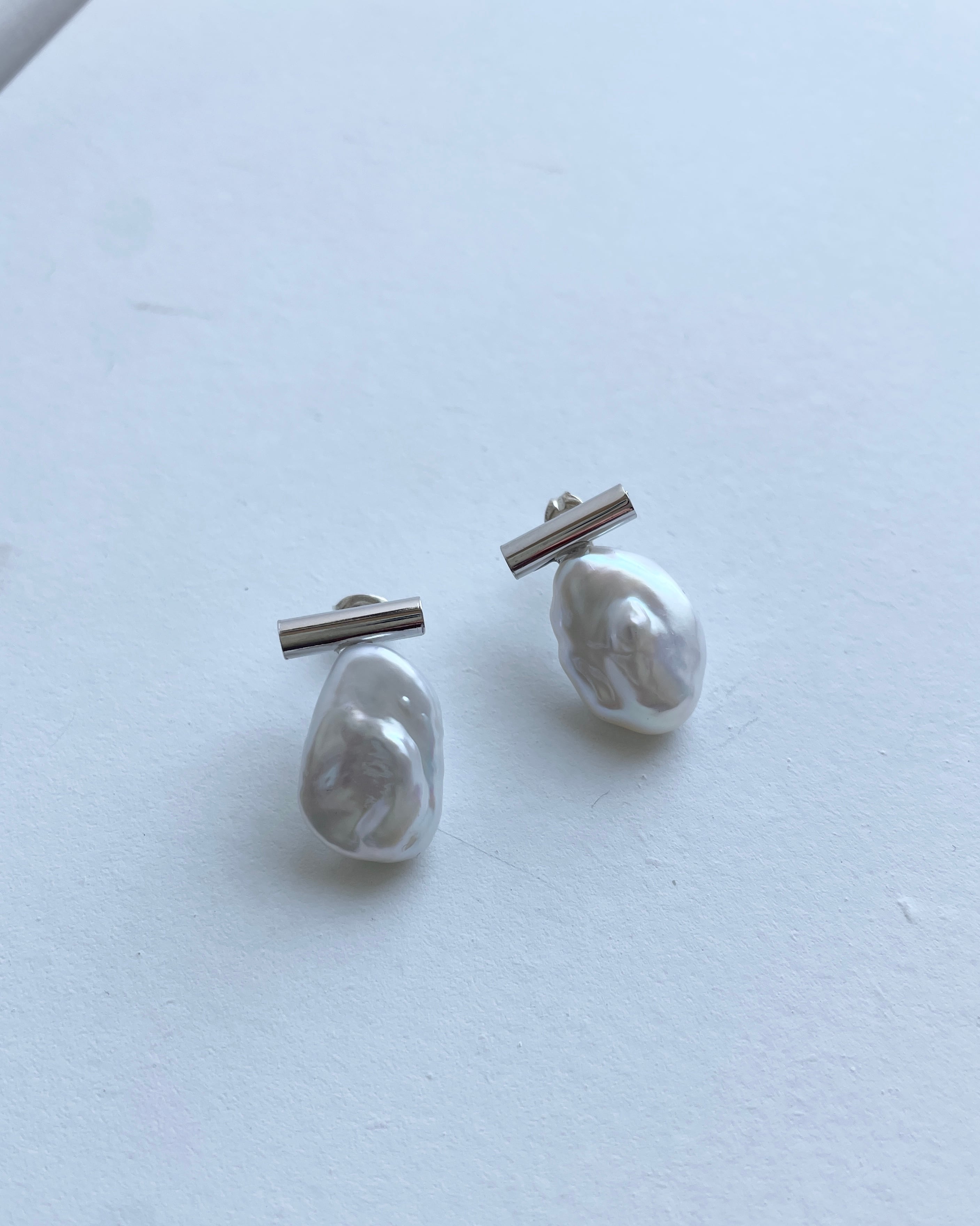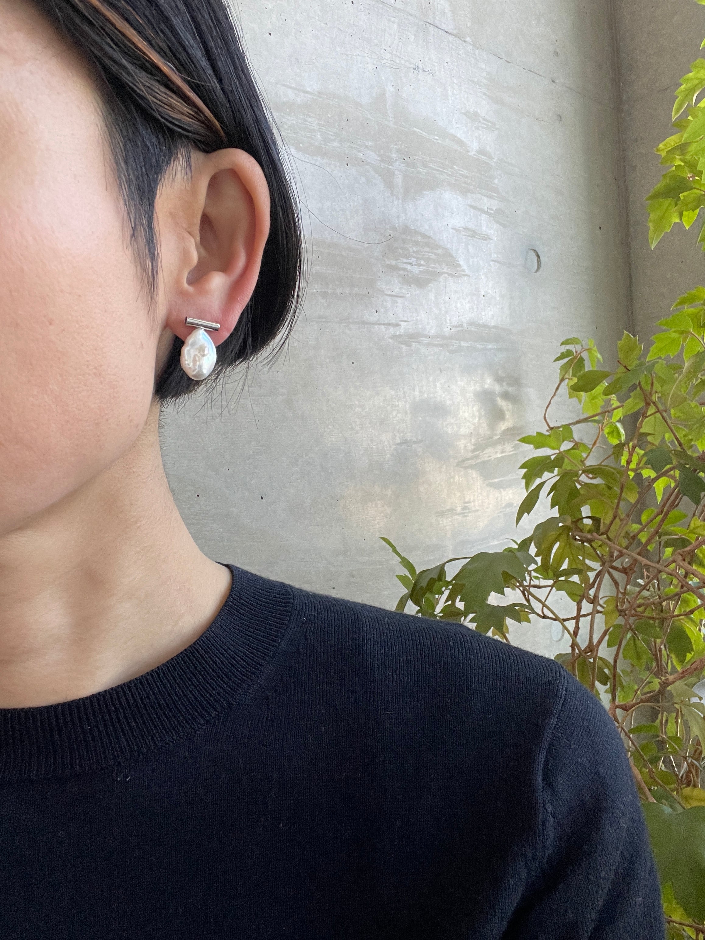 パールの形がユニークなピアス。
