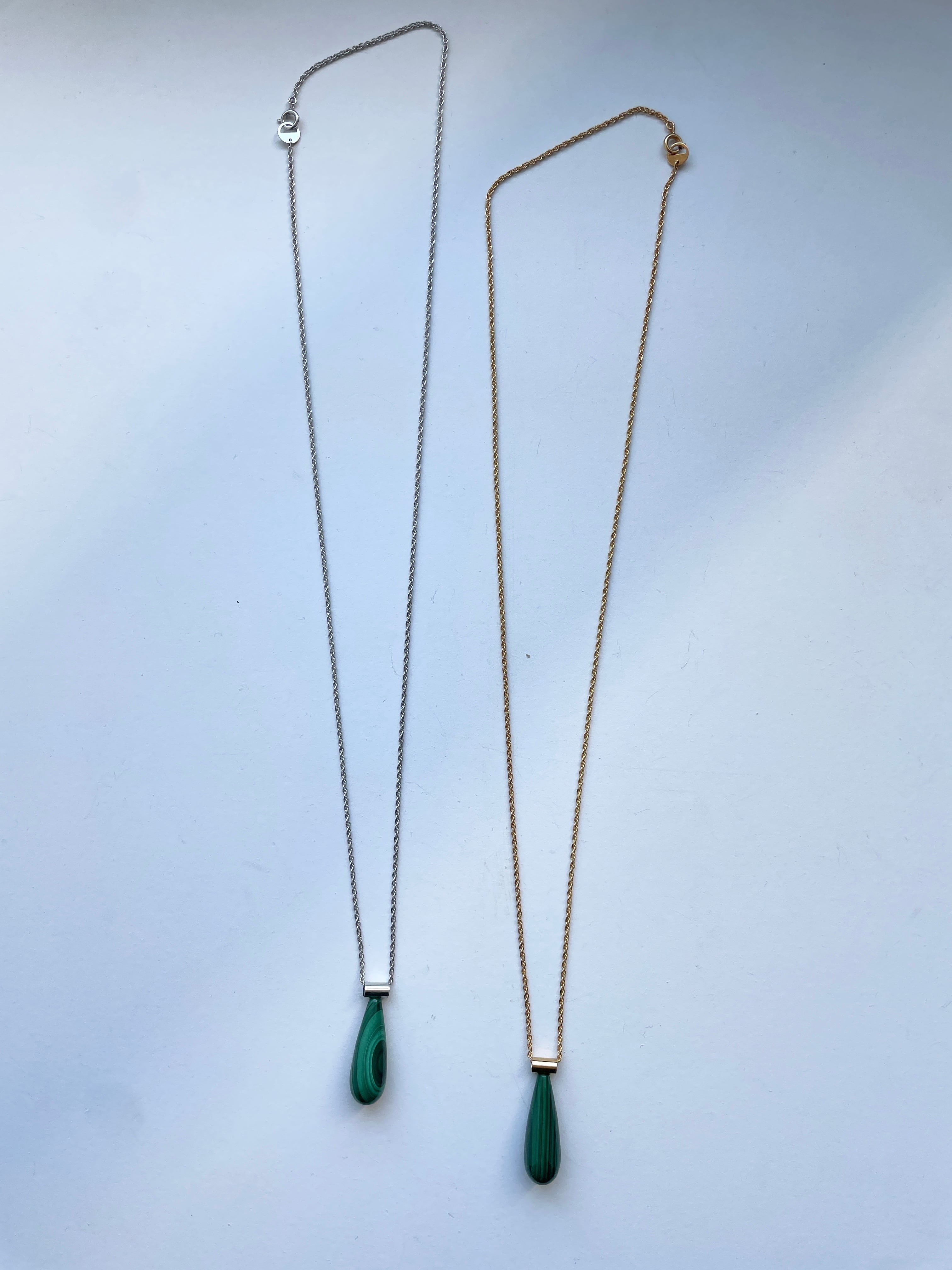 シルバーカラー:シルバー925(ロジウムコーティングもしくはゴールドプレート)・マラカイト